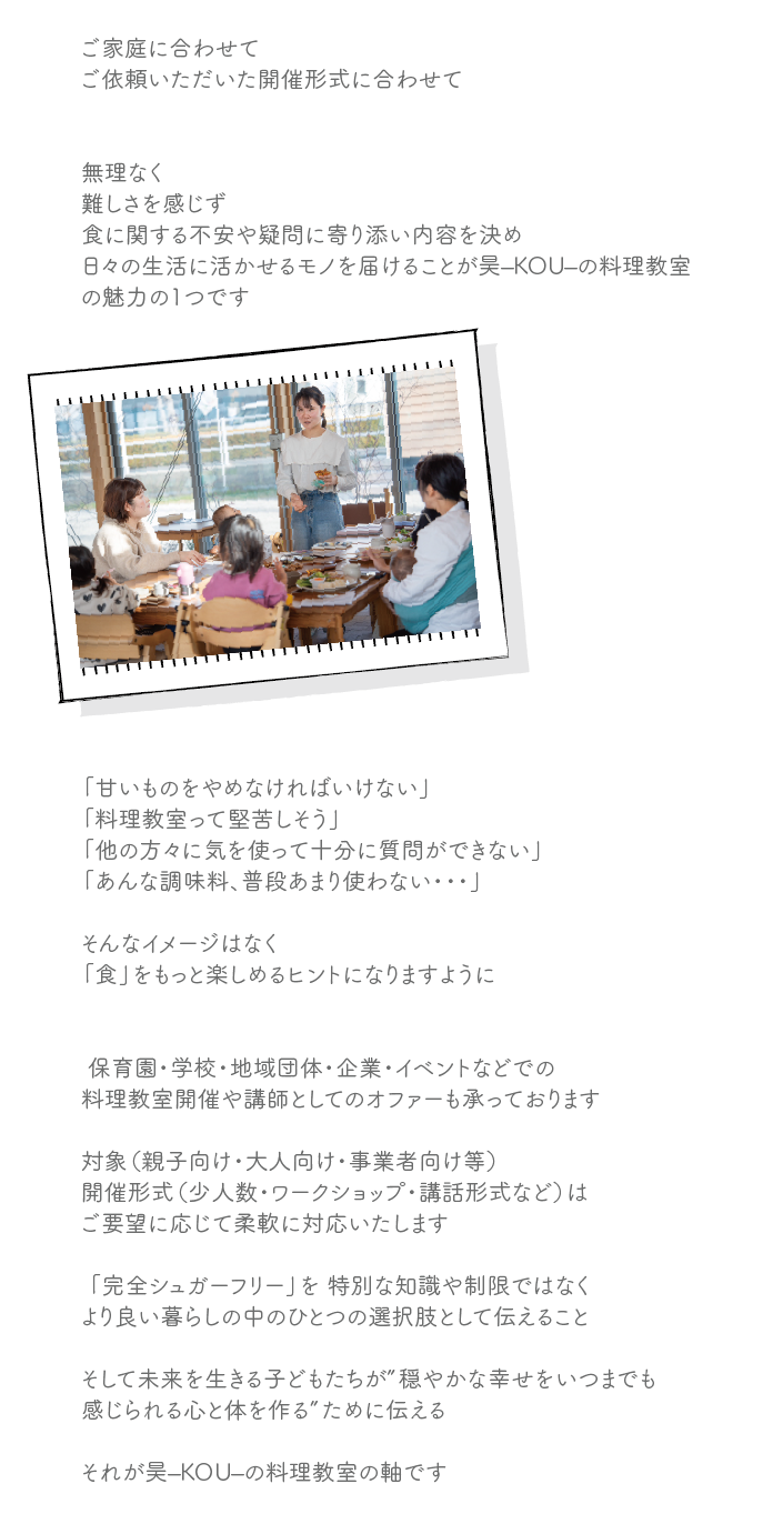 メニュー HOME lesson - 愛知県/完全無添加/シュガーフリー食品/子育て/健康情報/健康講座/キッチンカー